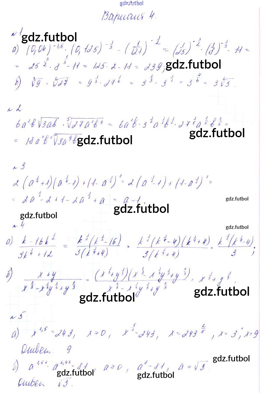 Готовые домашние задания по Алгебре за 9 класс Зив Дидактические материалы 2013 ФГОС - СР-7. Степень с рациональным показателем вариант 4