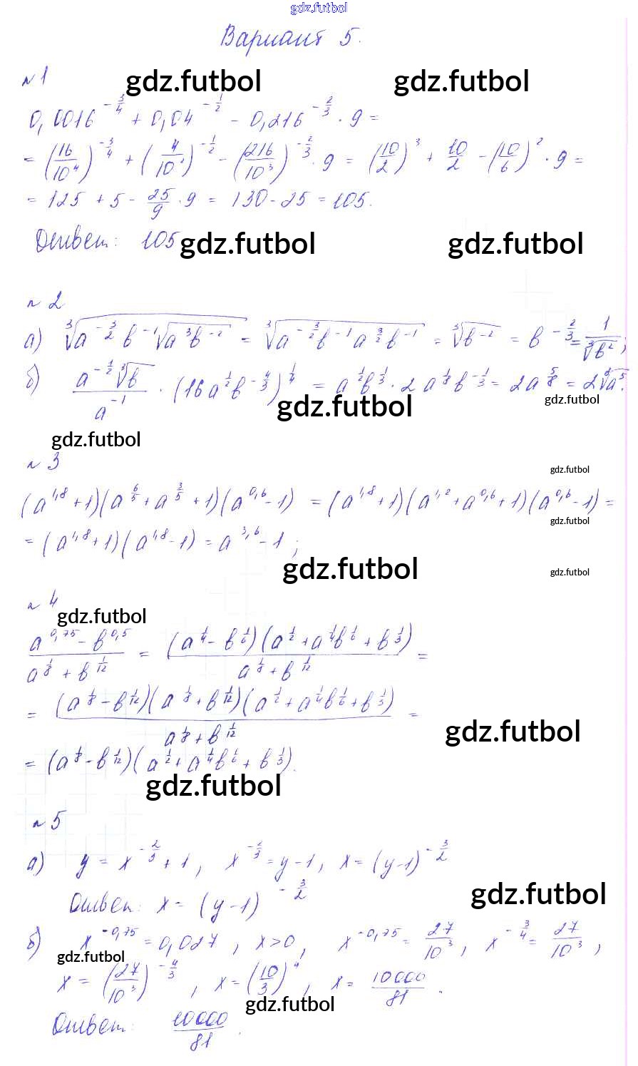 Готовые домашние задания по Алгебре за 9 класс Зив Дидактические материалы 2013 ФГОС - СР-7. Степень с рациональным показателем вариант 5