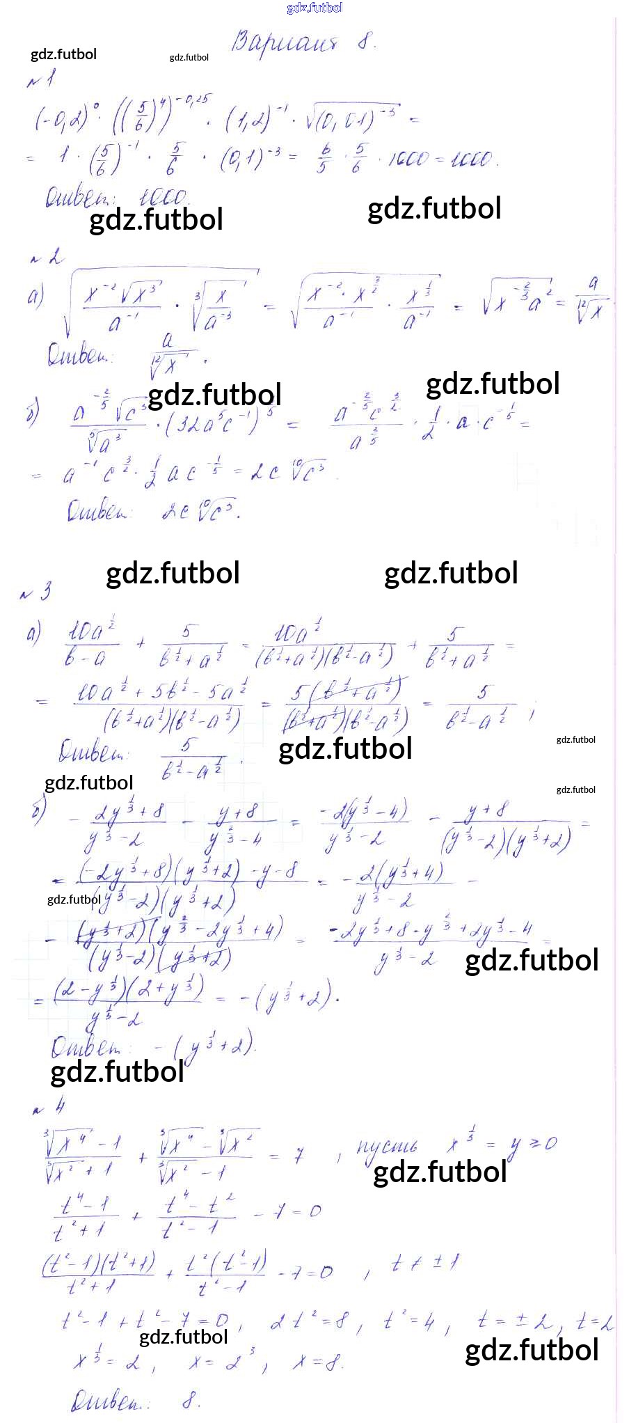 Готовые домашние задания по Алгебре за 9 класс Зив Дидактические материалы 2013 ФГОС - СР-7. Степень с рациональным показателем вариант 8