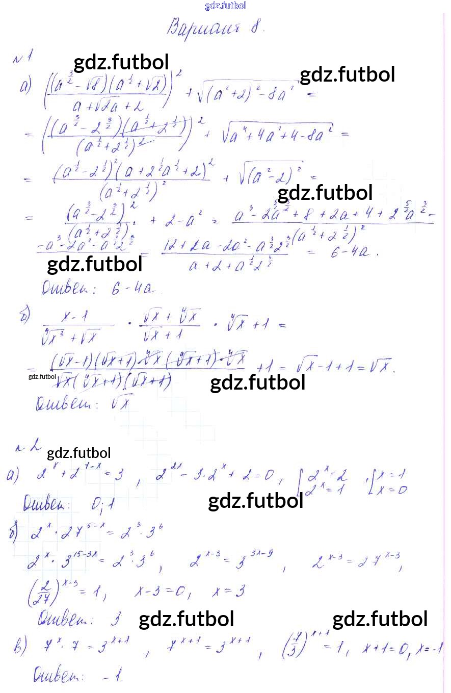 Готовые домашние задания по Алгебре за 9 класс Зив Дидактические материалы 2013 ФГОС - СР-8. Упражнения на все действия над радикалами и степенями вариант 8