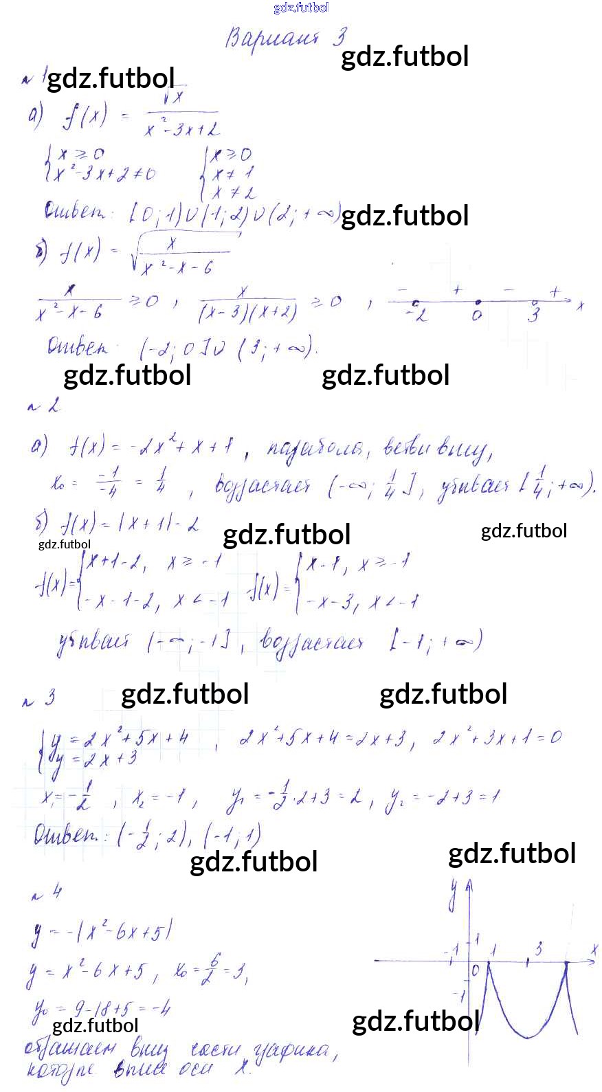 Готовые домашние задания по Алгебре за 9 класс Зив Дидактические материалы 2013 ФГОС - СР-9. Область определения функции. Возрастание и убывание функции вариант 3