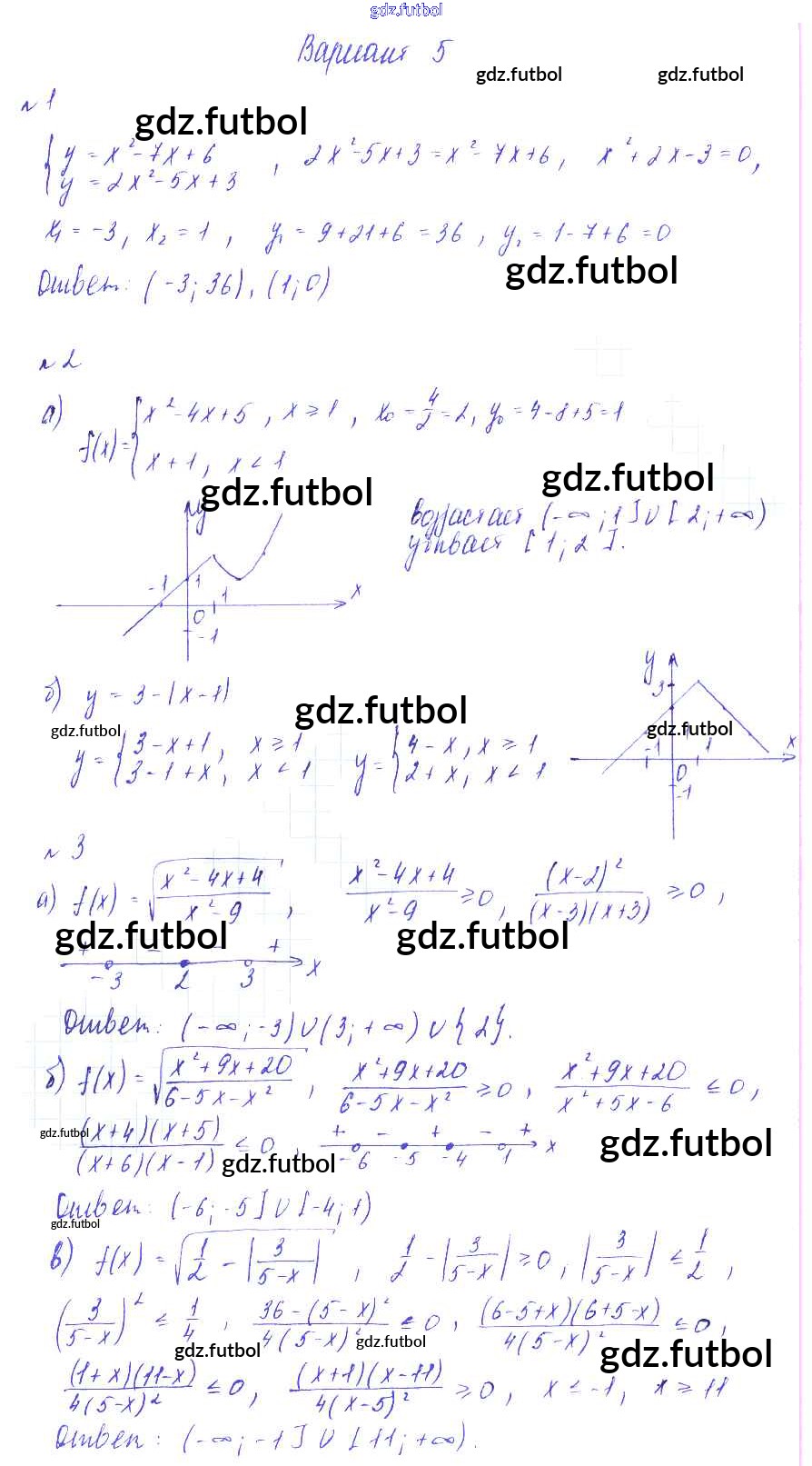 Готовые домашние задания по Алгебре за 9 класс Зив Дидактические материалы 2013 ФГОС - СР-9. Область определения функции. Возрастание и убывание функции вариант 5