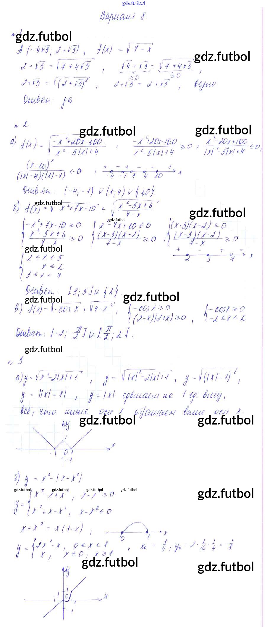 Готовые домашние задания по Алгебре за 9 класс Зив Дидактические материалы 2013 ФГОС - СР-9. Область определения функции. Возрастание и убывание функции вариант 8