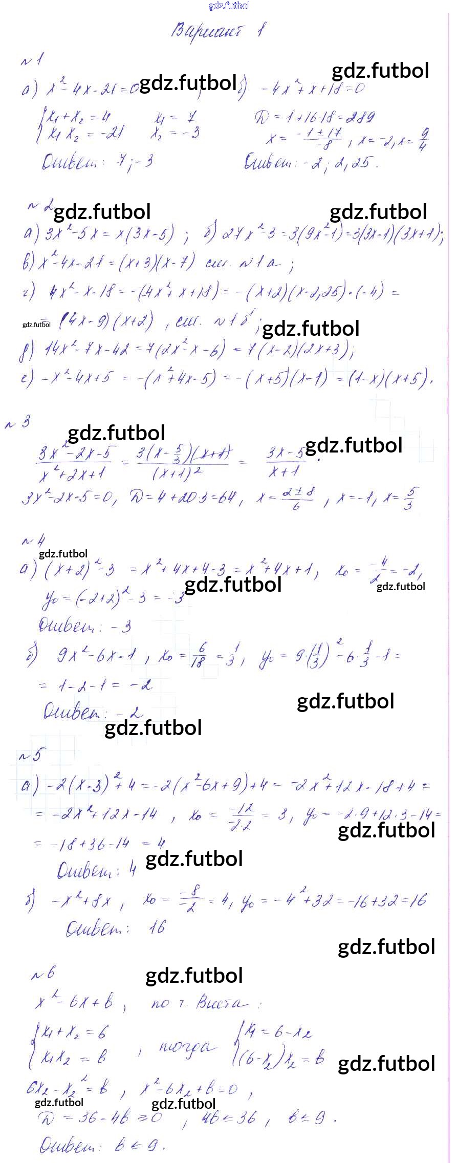 Готовые домашние задания по Алгебре за 9 класс Дьяконова Дидактические материалы УМК 2017 ФГОС - КР-1 вариант 1