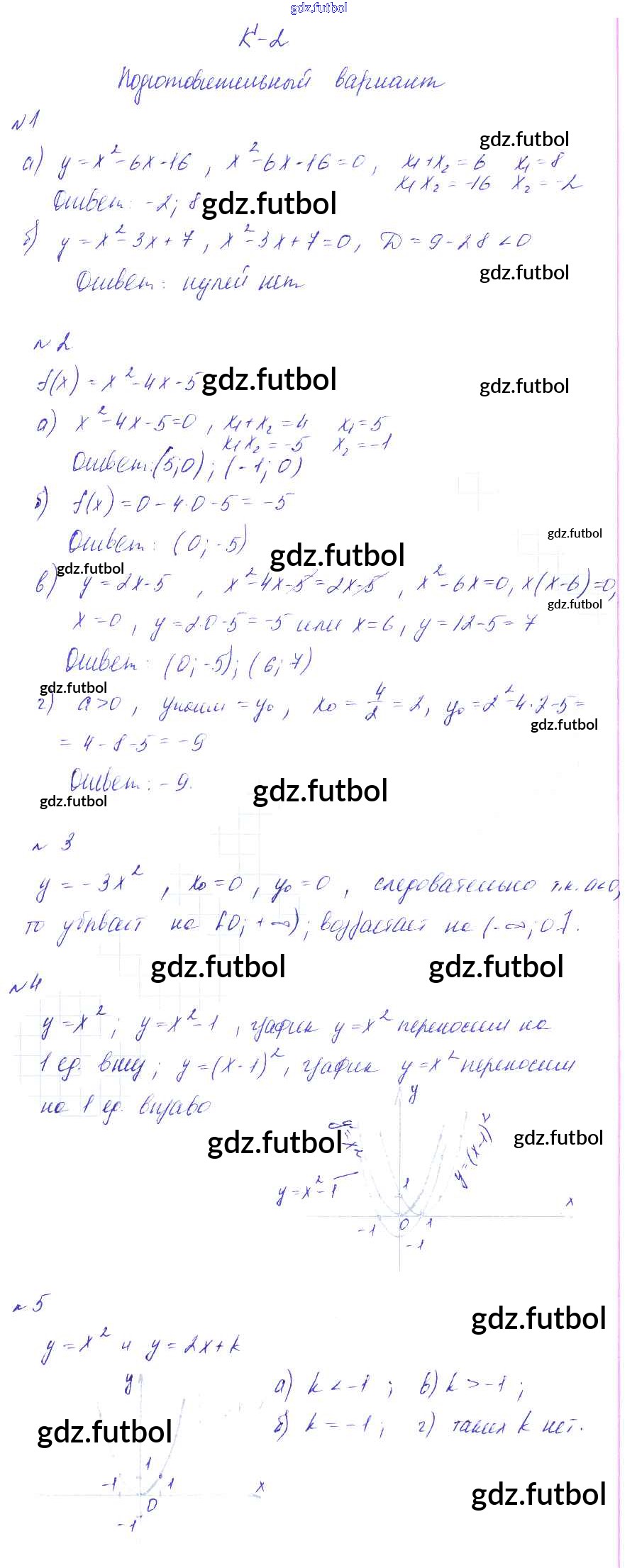 Готовые домашние задания по Алгебре за 9 класс Дьяконова Дидактические материалы УМК 2017 ФГОС - КР-2 подготовительный вариант