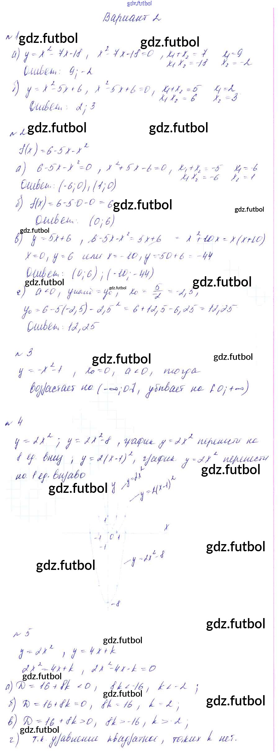 Готовые домашние задания по Алгебре за 9 класс Дьяконова Дидактические материалы УМК 2017 ФГОС - КР-2 вариант 2