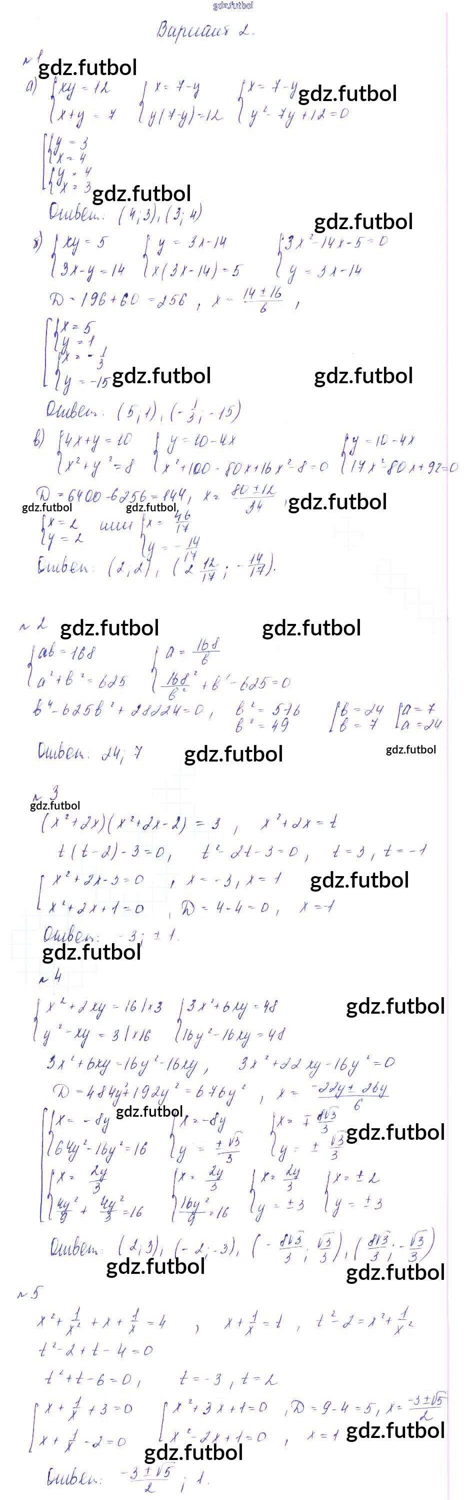 Готовые домашние задания по Алгебре за 9 класс Дьяконова Дидактические материалы УМК 2017 ФГОС - КР-6 вариант 2