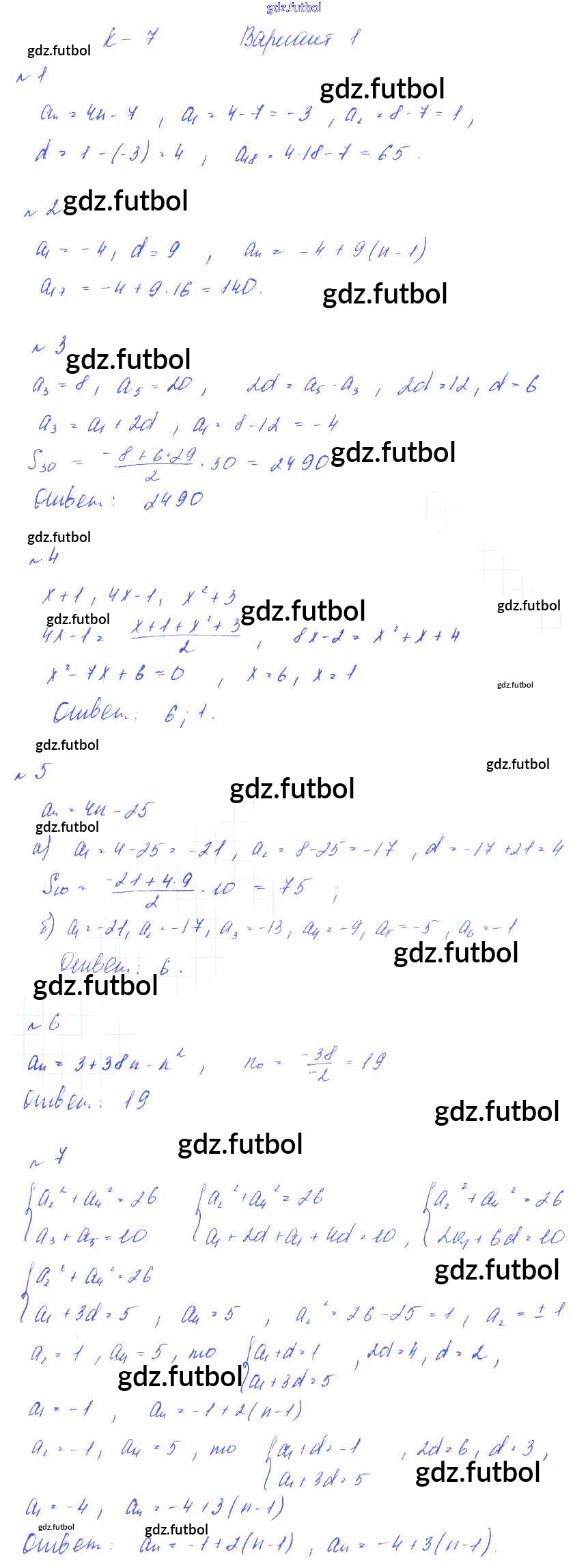 Готовые домашние задания по Алгебре за 9 класс Дьяконова Дидактические материалы УМК 2017 ФГОС - КР-7 вариант 1