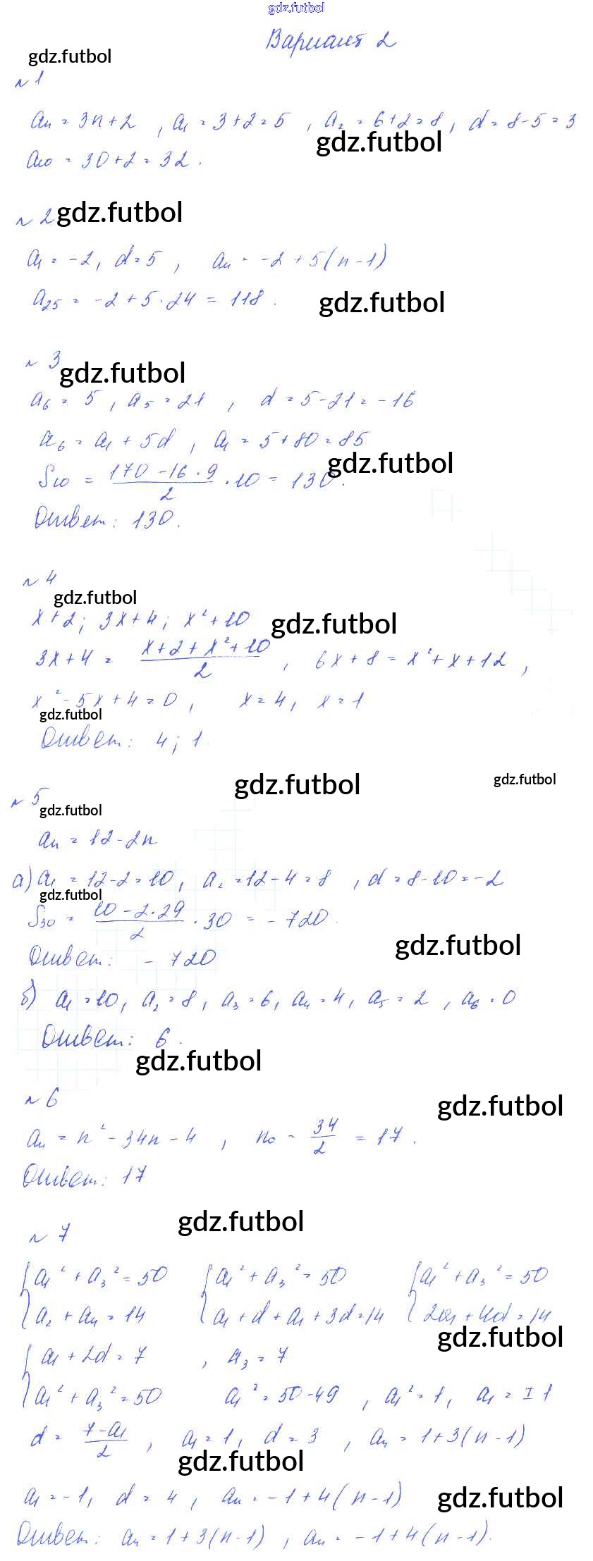 Готовые домашние задания по Алгебре за 9 класс Дьяконова Дидактические материалы УМК 2017 ФГОС - КР-7 вариант 2