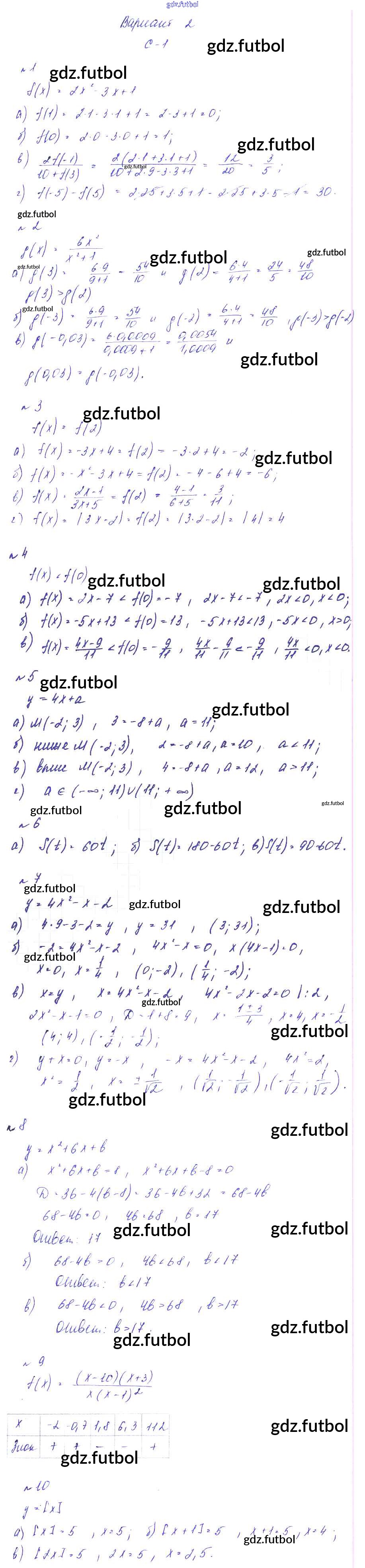 Готовые домашние задания по Алгебре за 9 класс Дьяконова Дидактические материалы УМК 2017 ФГОС - СР-1 вариант 2