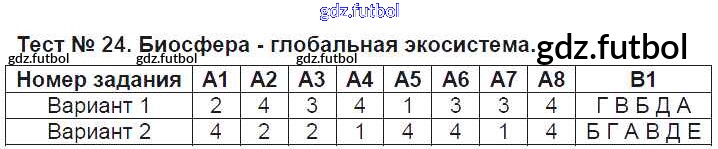 Готовые домашние задания по Биологии за 9 класс Богданов Контрольно-измерительные материалы (КИМ) 2017 ФГОС - Тесты Тест №24. Биосфера - глобальная экосистема