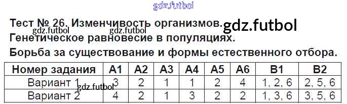 Готовые домашние задания по Биологии за 9 класс Богданов Контрольно-измерительные материалы (КИМ) 2017 ФГОС - Тесты Тест №26. Изменчивость организмов. Генетическое равновесие в популяциях