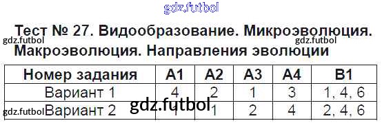 Готовые домашние задания по Биологии за 9 класс Богданов Контрольно-измерительные материалы (КИМ) 2017 ФГОС - Тесты Тест №27. Видообразование. Микроэволюция