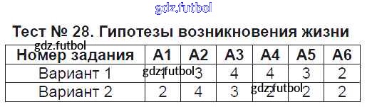 Готовые домашние задания по Биологии за 9 класс Богданов Контрольно-измерительные материалы (КИМ) 2017 ФГОС - Тесты Тест №28. Гипотезы возникновения жизни