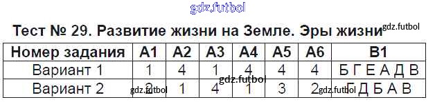 Готовые домашние задания по Биологии за 9 класс Богданов Контрольно-измерительные материалы (КИМ) 2017 ФГОС - Тесты Тест №29. Развитие жизни на Земле. Эры жизни