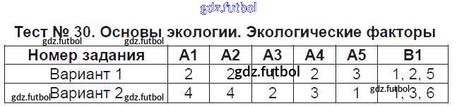 Готовые домашние задания по Биологии за 9 класс Богданов Контрольно-измерительные материалы (КИМ) 2017 ФГОС - Тесты Тест №30. Основы экологии. Экологические факторы