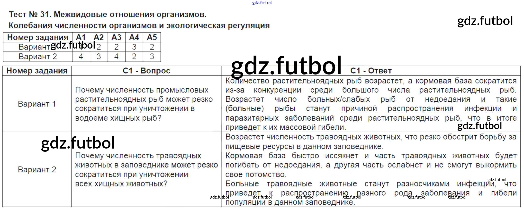 Готовые домашние задания по Биологии за 9 класс Богданов Контрольно-измерительные материалы (КИМ) 2017 ФГОС - Тесты Тест №31. Межвидовые отношения организмов