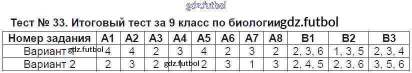 Готовые домашние задания по Биологии за 9 класс Богданов Контрольно-измерительные материалы (КИМ) 2017 ФГОС - Тесты Тест №33. Итоговый тест за 9 класс по биологии