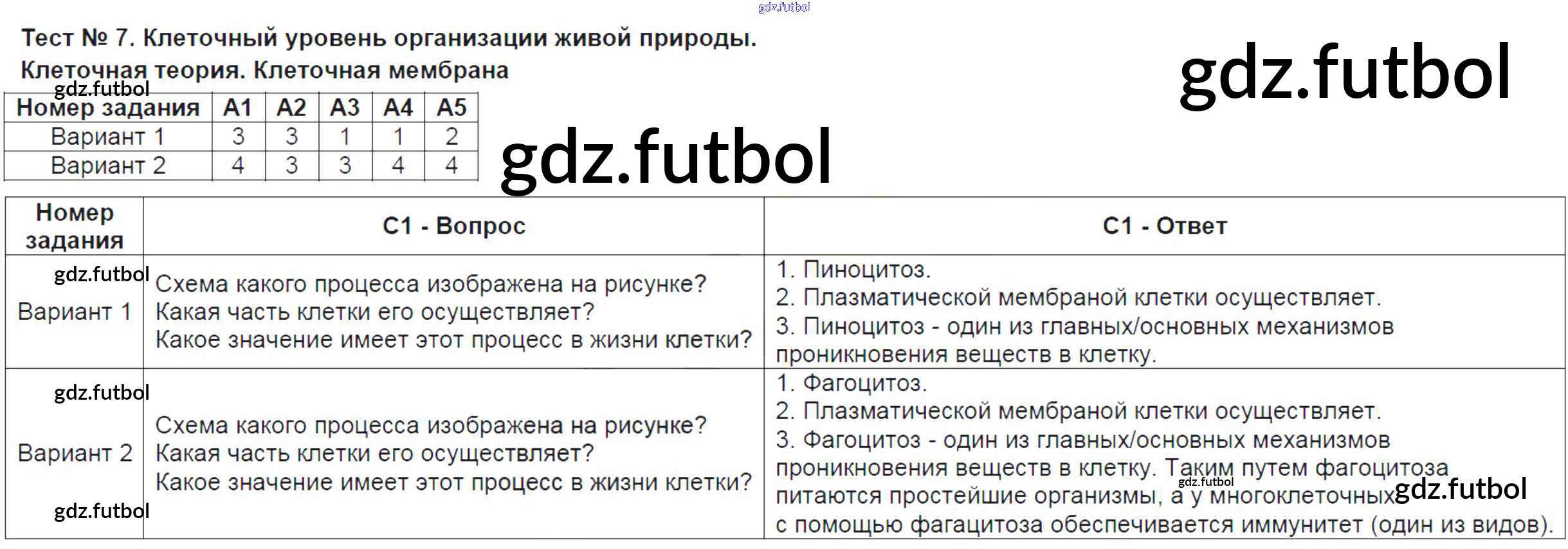 Готовые домашние задания по Биологии за 9 класс Богданов Контрольно-измерительные материалы (КИМ) 2017 ФГОС - Тесты Тест №7. Клеточный уровень организации живой природы