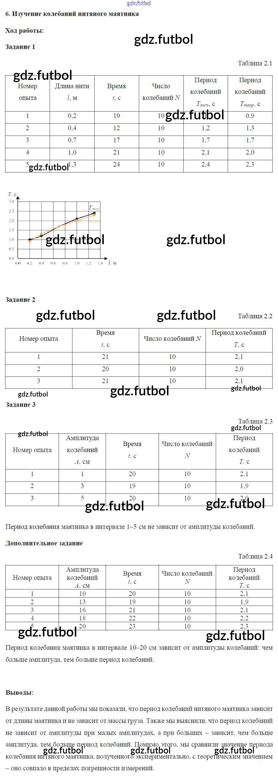 Готовые домашние задания по Физике за 9 класс Артеменков Тетрадь-практикум Сферы 2016 ФГОС - Лабораторные работы 6