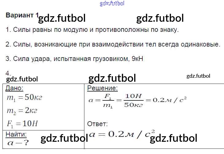 Готовые домашние задания по Физике за 9 класс Громцева Контрольные и самостоятельные работы УМК 2017 ФГОС - СР-13. Варианты 1