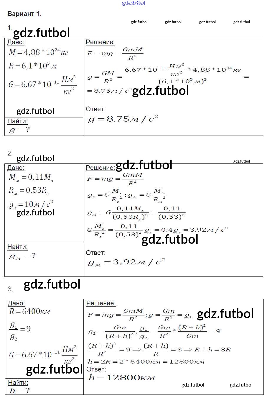 Готовые домашние задания по Физике за 9 класс Громцева Контрольные и самостоятельные работы УМК 2017 ФГОС - СР-17. Варианты 1