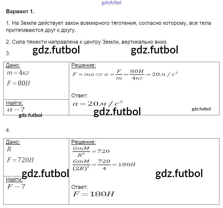 Готовые домашние задания по Физике за 9 класс Громцева Контрольные и самостоятельные работы УМК 2017 ФГОС - СР-18. Варианты 1