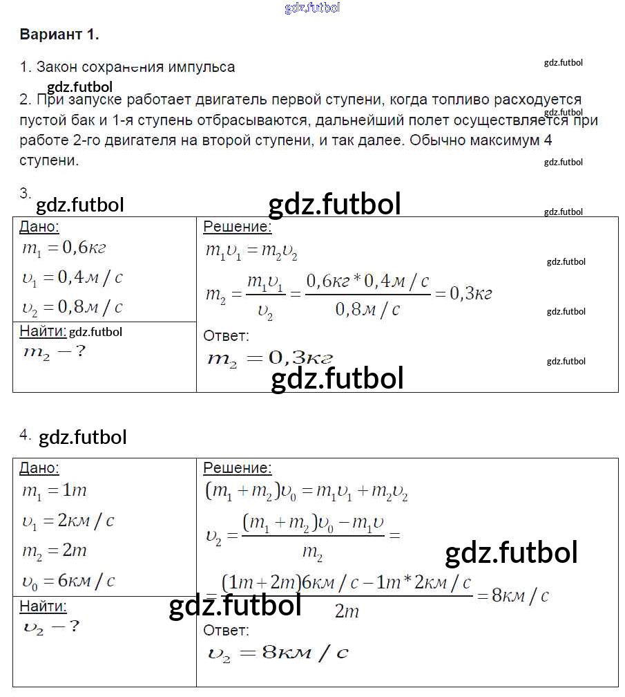 Готовые домашние задания по Физике за 9 класс Громцева Контрольные и самостоятельные работы УМК 2017 ФГОС - СР-26. Варианты 1