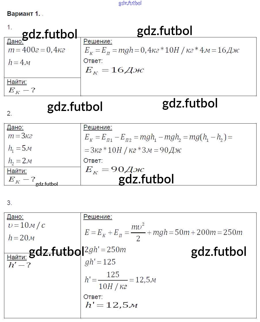 Готовые домашние задания по Физике за 9 класс Громцева Контрольные и самостоятельные работы УМК 2017 ФГОС - СР-28. Варианты 1
