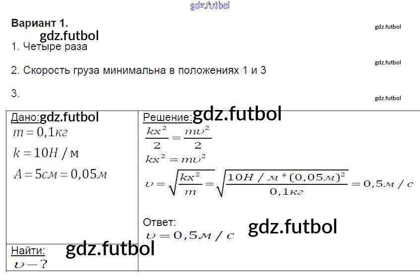 Готовые домашние задания по Физике за 9 класс Громцева Контрольные и самостоятельные работы УМК 2017 ФГОС - СР-30. Варианты 1