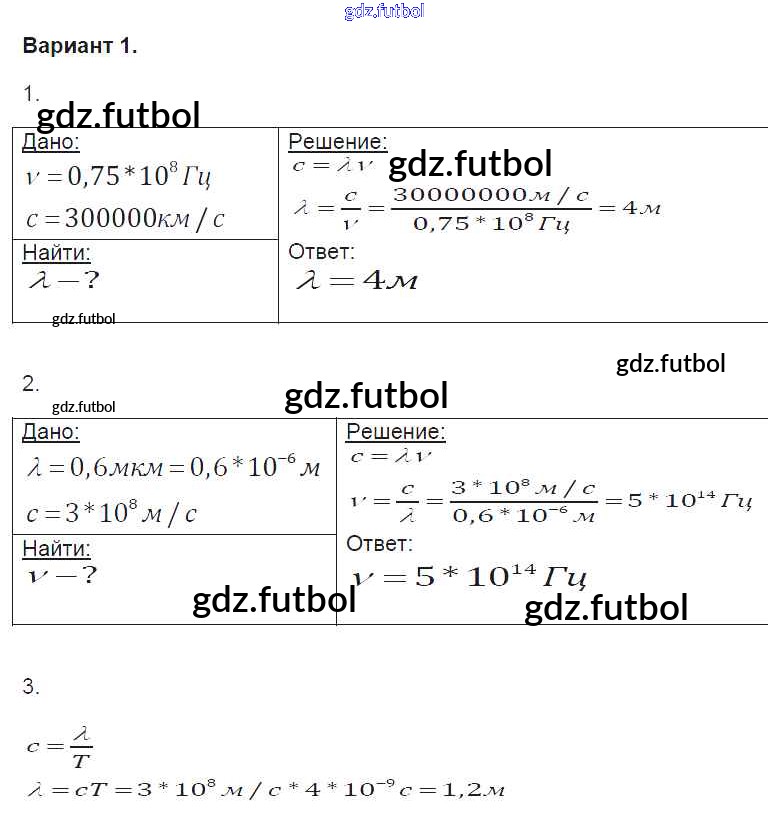 Готовые домашние задания по Физике за 9 класс Громцева Контрольные и самостоятельные работы УМК 2017 ФГОС - СР-48. Варианты 1