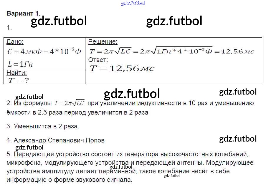 Готовые домашние задания по Физике за 9 класс Громцева Контрольные и самостоятельные работы УМК 2017 ФГОС - СР-49. Варианты 1