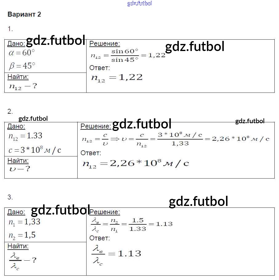 Готовые домашние задания по Физике за 9 класс Громцева Контрольные и самостоятельные работы УМК 2017 ФГОС - СР-52. Варианты 2