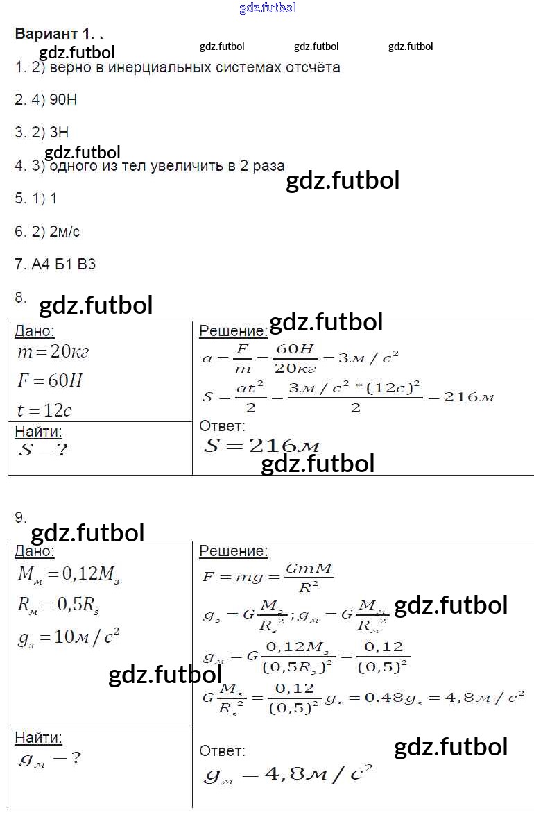 Готовые домашние задания по Физике за 9 класс Громцева Контрольные и самостоятельные работы УМК 2017 ФГОС - 1. Варианты 1