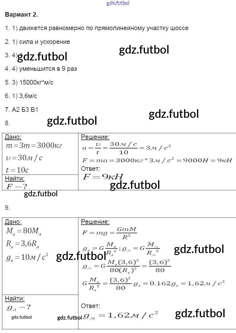 Готовые домашние задания по Физике за 9 класс Громцева Контрольные и самостоятельные работы УМК 2017 ФГОС - 1. Варианты 2