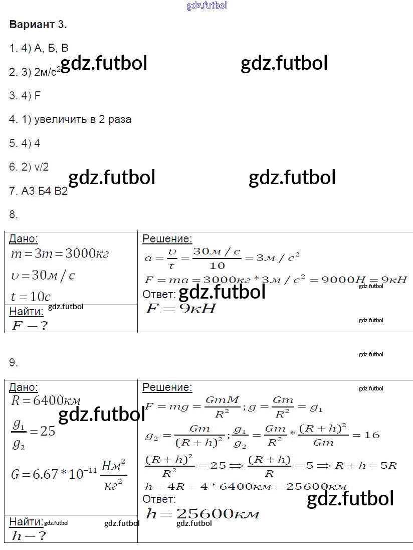 Готовые домашние задания по Физике за 9 класс Громцева Контрольные и самостоятельные работы УМК 2017 ФГОС - 1. Варианты 3