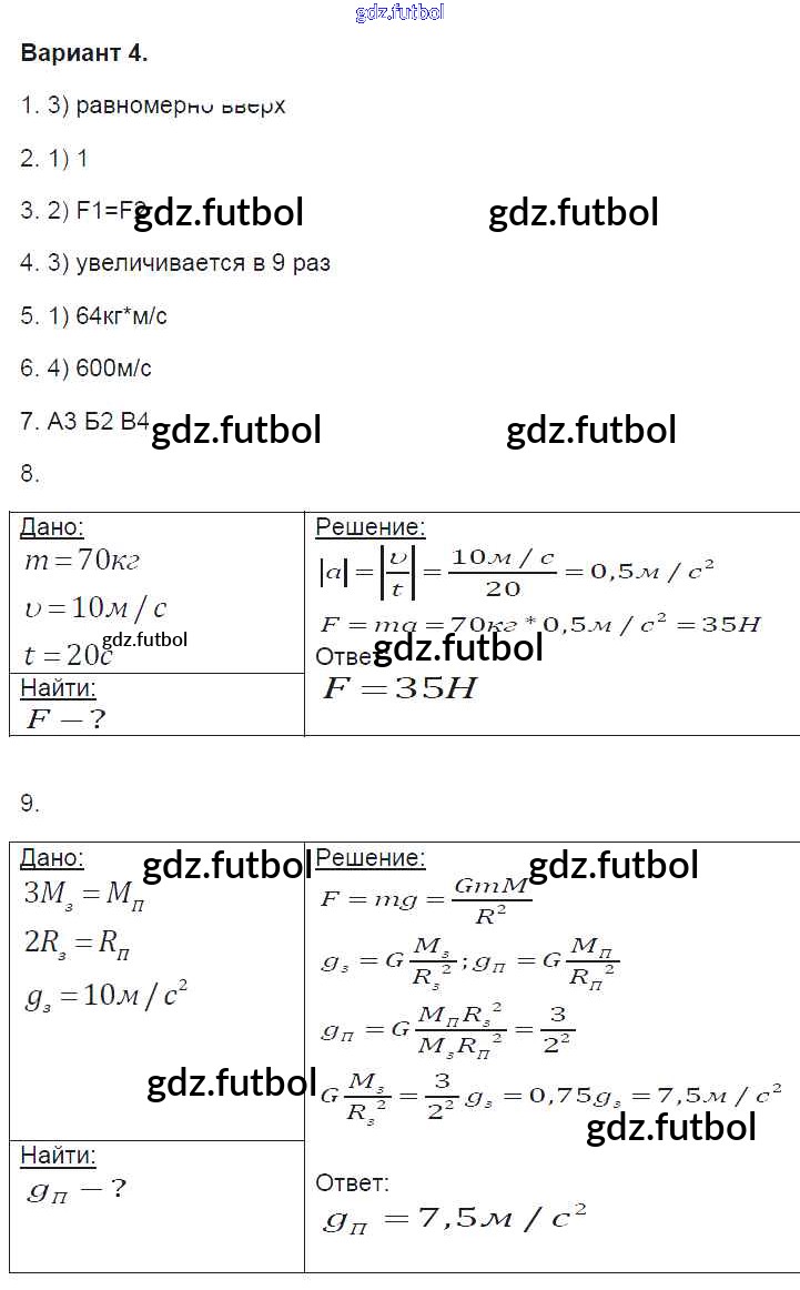 Готовые домашние задания по Физике за 9 класс Громцева Контрольные и самостоятельные работы УМК 2017 ФГОС - 1. Варианты 4