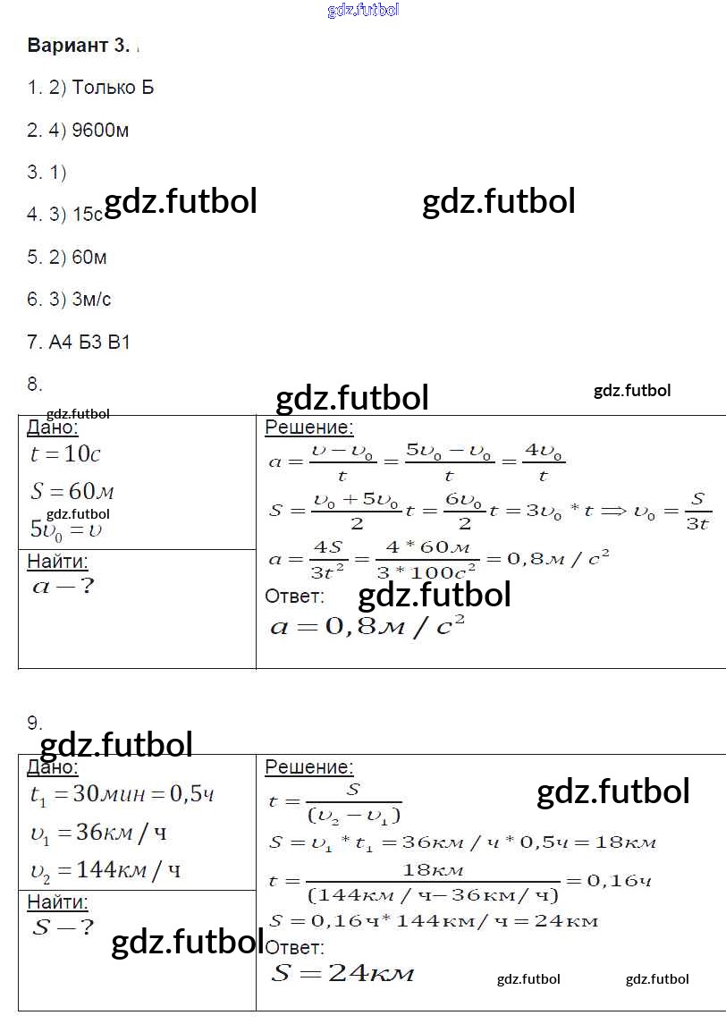 Готовые домашние задания по Физике за 9 класс Громцева Контрольные и самостоятельные работы УМК 2017 ФГОС - 2. Варианты 3