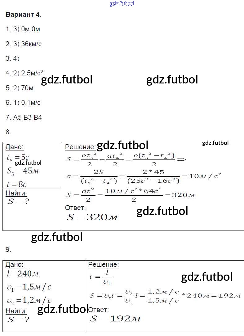 Готовые домашние задания по Физике за 9 класс Громцева Контрольные и самостоятельные работы УМК 2017 ФГОС - 2. Варианты 4