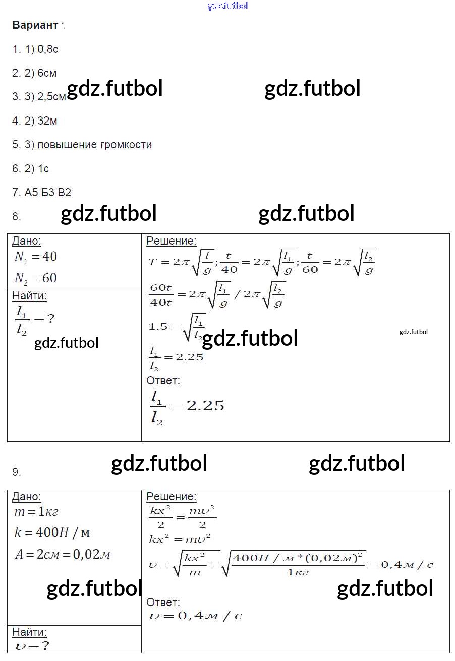 Готовые домашние задания по Физике за 9 класс Громцева Контрольные и самостоятельные работы УМК 2017 ФГОС - Глава 2. Варианты 1