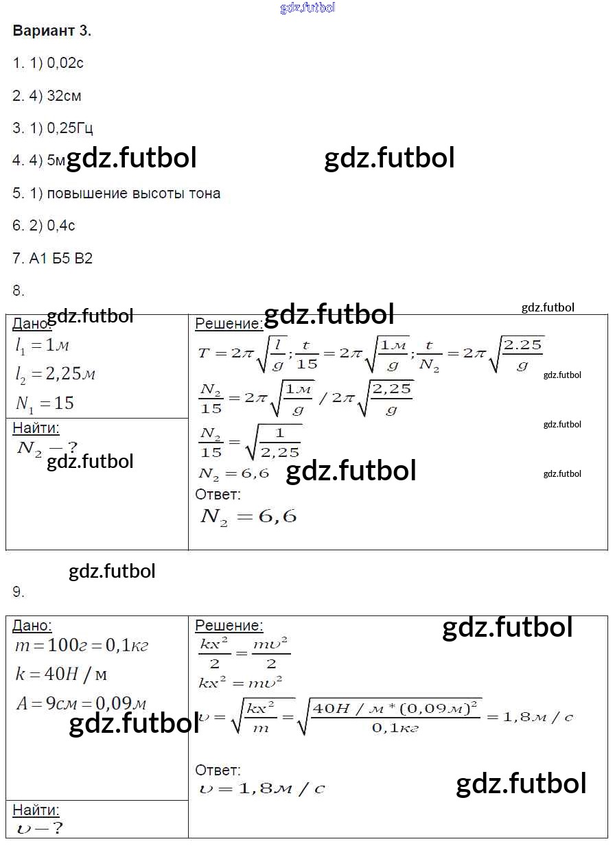 Готовые домашние задания по Физике за 9 класс Громцева Контрольные и самостоятельные работы УМК 2017 ФГОС - Глава 2. Варианты 3