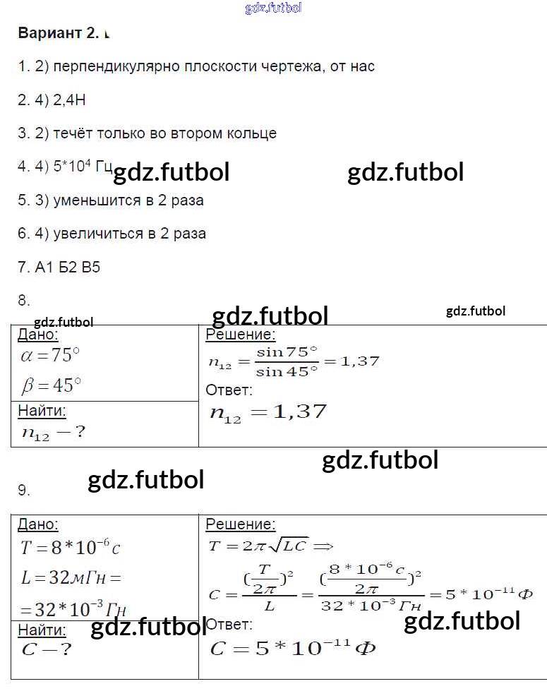 Готовые домашние задания по Физике за 9 класс Громцева Контрольные и самостоятельные работы УМК 2017 ФГОС - Глава 3. Варианты 2