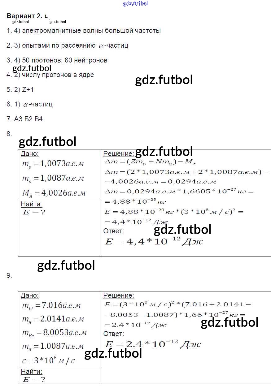 Готовые домашние задания по Физике за 9 класс Громцева Контрольные и самостоятельные работы УМК 2017 ФГОС - Глава 4. Варианты 2