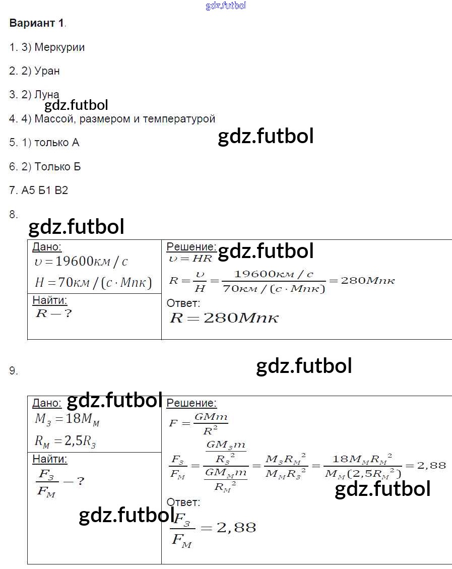 Готовые домашние задания по Физике за 9 класс Громцева Контрольные и самостоятельные работы УМК 2017 ФГОС - Глава 5. Варианты 1