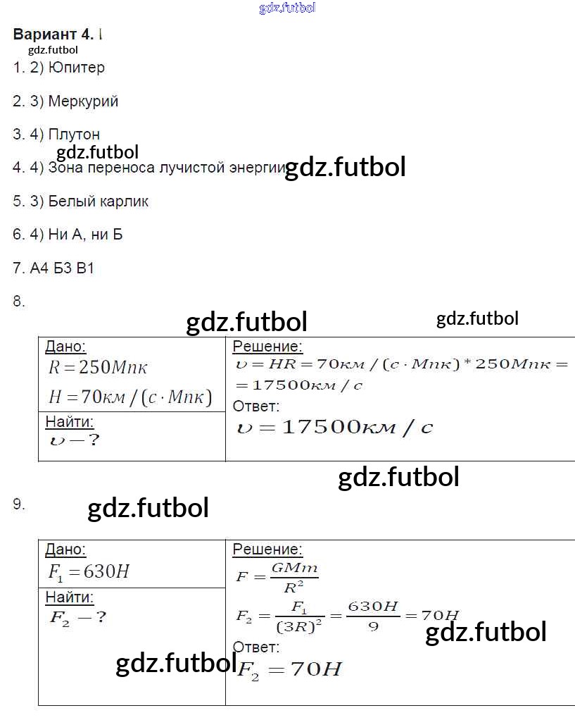Готовые домашние задания по Физике за 9 класс Громцева Контрольные и самостоятельные работы УМК 2017 ФГОС - Глава 5. Варианты 4