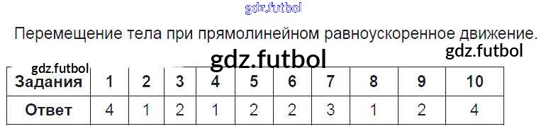 Готовые домашние задания по Физике за 9 класс Громцева Тесты УМК 2017 ФГОС - Глава 1. Законы взаимодействия и движения тел Перемещение тела при прямолинейном равноускоренном движении