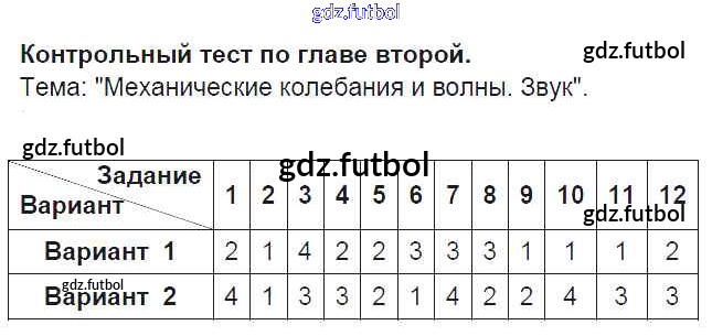 Готовые домашние задания по Физике за 9 класс Громцева Тесты УМК 2017 ФГОС - Глава 2. Механические колебания и волны Контрольный тест