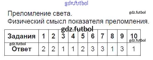 Готовые домашние задания по Физике за 9 класс Громцева Тесты УМК 2017 ФГОС - Глава 3. Электромагнитное поле Преломление света. Физический смысл показателя преломления