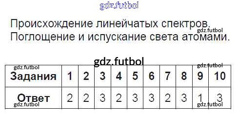 Готовые домашние задания по Физике за 9 класс Громцева Тесты УМК 2017 ФГОС - Глава 3. Электромагнитное поле Поглощение и испускание света атомами. Происхождение линейчатых спектров