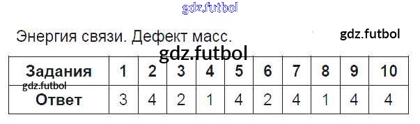 Готовые домашние задания по Физике за 9 класс Громцева Тесты УМК 2017 ФГОС - Глава 4. Строение атома и атомного ядра Энергия связи. Дефект масс